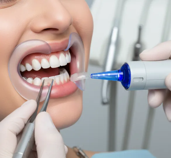 Lentes em resina são restaurações estéticas ultrafinas aplicadas sobre a superfície dos dentes para corrigir cor, forma, pequenos desalinhamentos e fraturas. São feitas em consultório, moldadas diretamente pelo dentista e permitem ajustes imediatos.