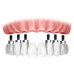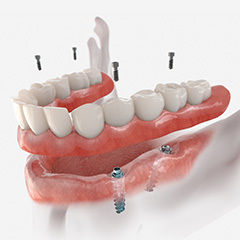 Em alguns casos, a prótese pode ser apoiada sobre implantes, formando um tratamento combinado, sempre mediante avaliação profissional.